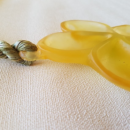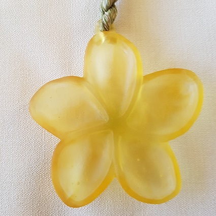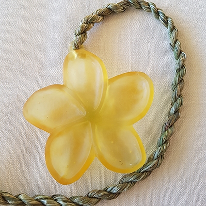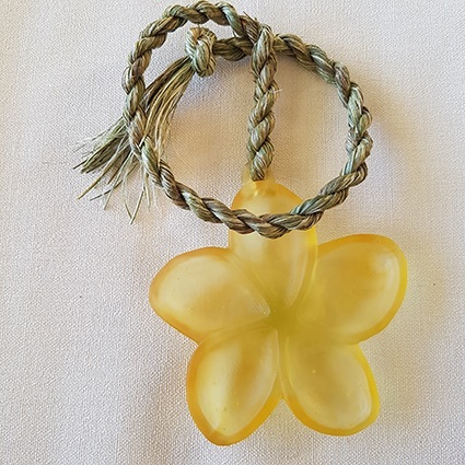 Cast glass flower, hangs from handmade harakeke rope.